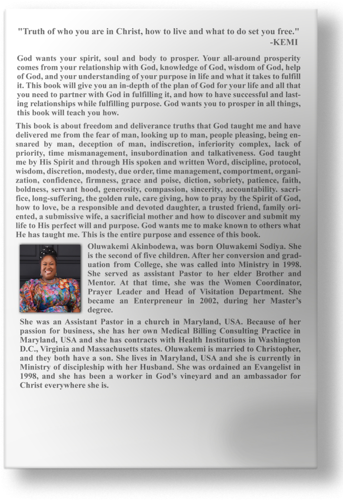 God wants your spirit, soul and body to prosper. Your all-around prosperity comes from your relationship with God, knowledge of God, wisdom of God, help of God, and your understanding of your purpose in life and what it takes to fulfill it. This book will give you an in-depth of the plan of God for your life and all that you need to partner with God in fulfilling it, and how to have successful and lasting relationships while fulfilling purpose. God wants you to prosper in all things, this book will teach you how.